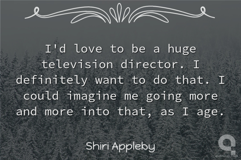 I'd love to be a huge television director. I definitely want to do that. I could imagine me going more and more into that, as I age.
