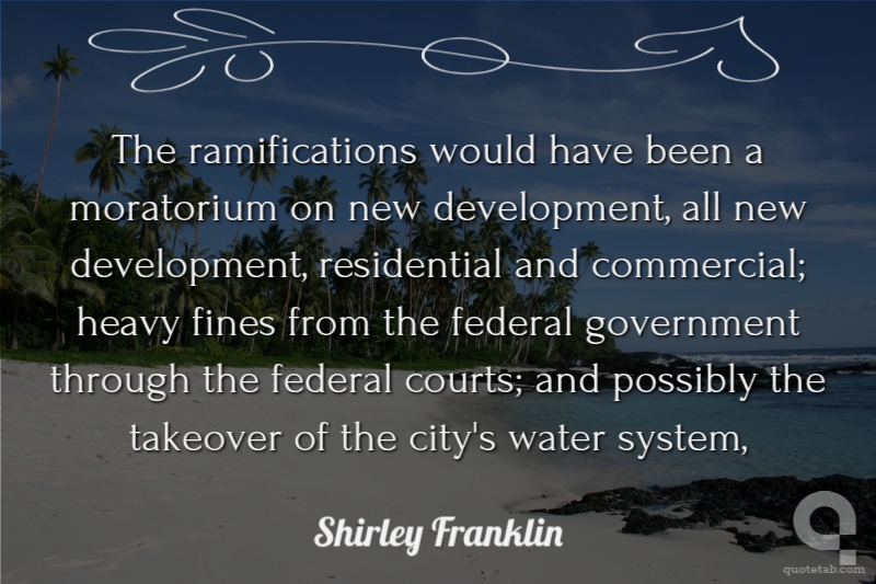 The ramifications would have been a moratorium on new development, all new development, residential and commercial; heavy fines from the federal government through the federal courts; and possibly the takeover of the city's water system,
