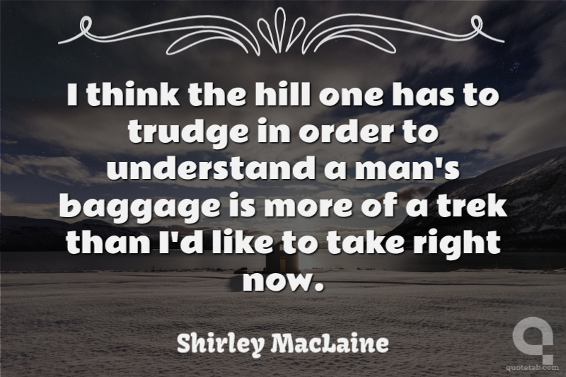I think the hill one has to trudge in order to understand a man's baggage is more of a trek than I'd like to take right now.
