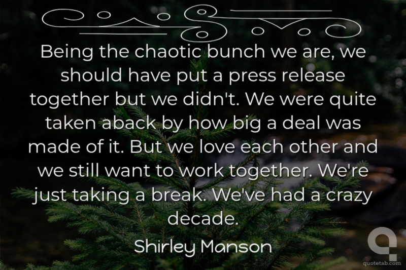 Being the chaotic bunch we are, we should have put a press release together but we didn't. We were quite taken aback by how big a deal was made of it. But we love each other and we still want to work together. We're just taking a break. We've had a crazy decade.