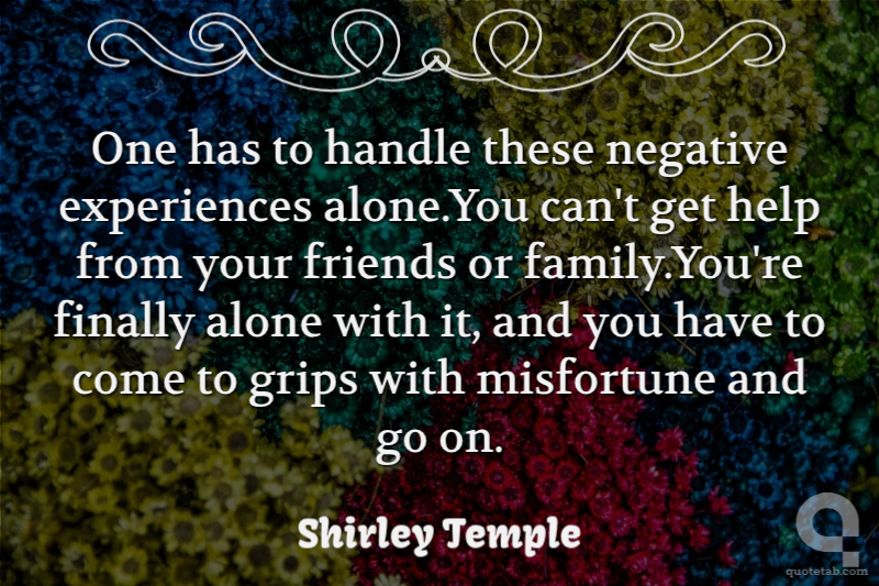 One has to handle these negative experiences alone.You can't get help from your friends or family.You're finally alone with it, and you have to come to grips with misfortune and go on.