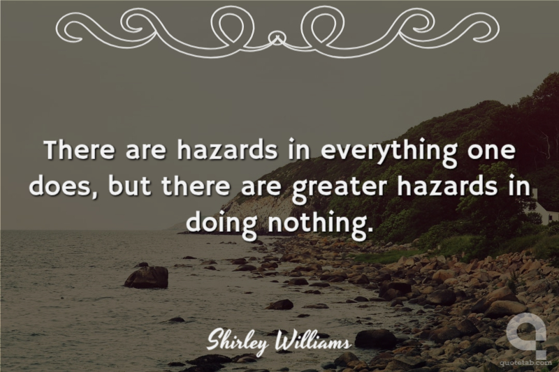 There are hazards in everything one does, but there are greater hazards in doing nothing.