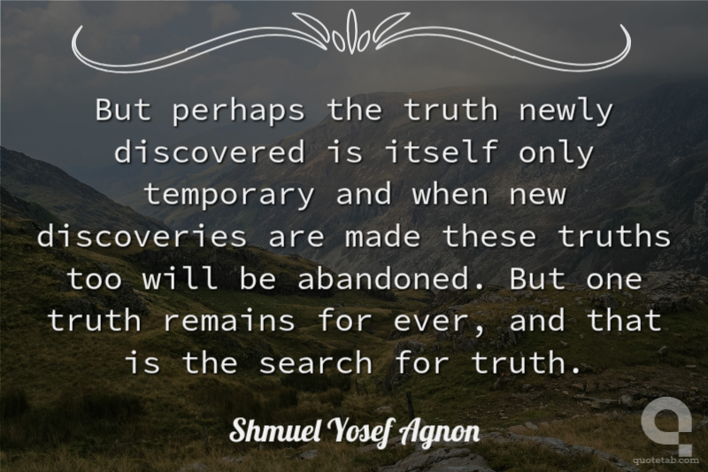 But perhaps the truth newly discovered is itself only temporary and when new discoveries are made these truths too will be abandoned. But one truth remains for ever, and that is the search for truth.