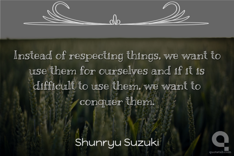 Instead of respecting things, we want to use them for ourselves and if it is difficult to use them, we want to conquer them.
