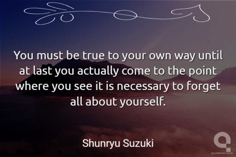 You must be true to your own way until at last you actually come to the point where you see it is necessary to forget all about yourself.