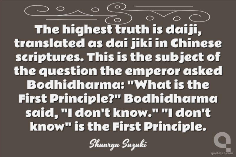 The highest truth is daiji, translated as dai jiki in Chinese scriptures. This is the subject of the question the emperor asked Bodhidharma: "What is the First Principle?" Bodhidharma said, "I don't know." "I don't know" is the First Principle.