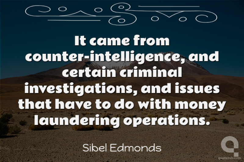 It came from counter-intelligence, and certain criminal investigations, and issues that have to do with money laundering operations.