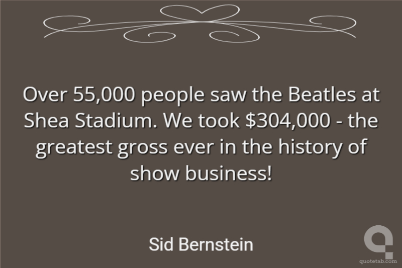Over 55,000 people saw the Beatles at Shea Stadium. We took $304,000 - the greatest gross ever in the history of show business!