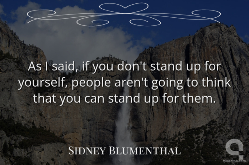 As I said, if you don't stand up for yourself, people aren't going to think that you can stand up for them.