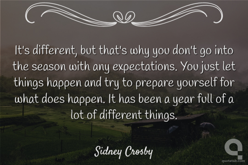 It's different, but that's why you don't go into the season with any expectations. You just let things happen and try to prepare yourself for what does happen. It has been a year full of a lot of different things.