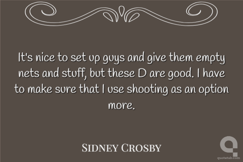 It's nice to set up guys and give them empty nets and stuff, but these D are good. I have to make sure that I use shooting as an option more.