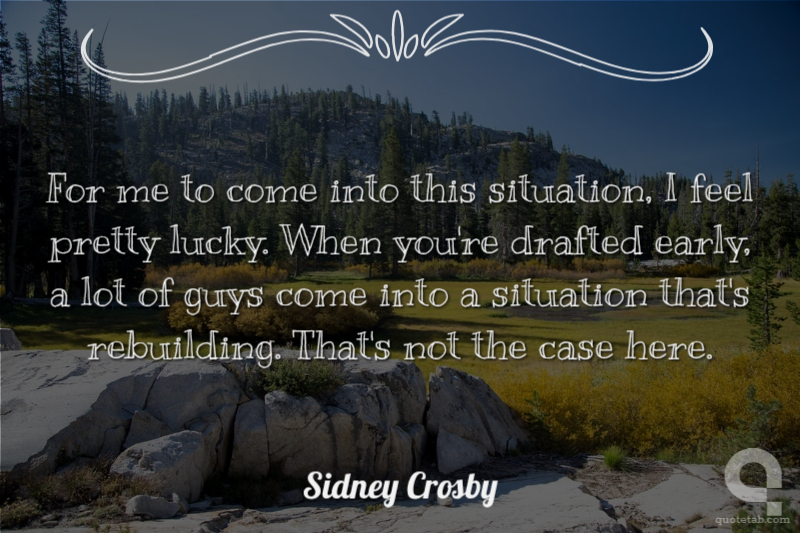 For me to come into this situation, I feel pretty lucky. When you're drafted early, a lot of guys come into a situation that's rebuilding. That's not the case here.