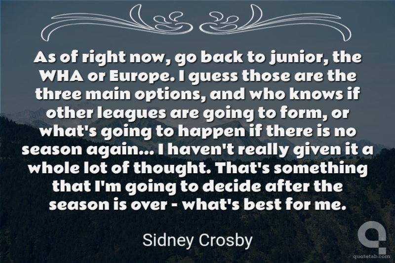 As of right now, go back to junior, the WHA or Europe. I guess those are the three main options, and who knows if other leagues are going to form, or what's going to happen if there is no season again... I haven't really given it a whole lot of thought. That's something that I'm going to decide after the season is over - what's best for me.