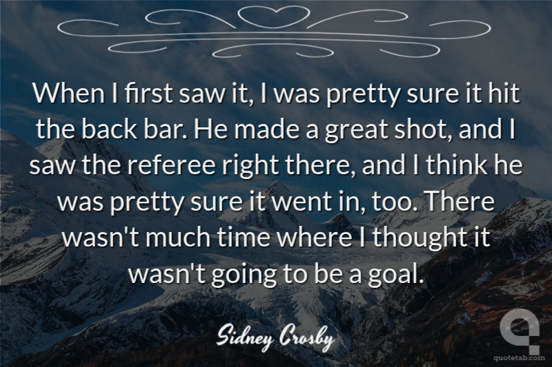 When I first saw it, I was pretty sure it hit the back bar. He made a great shot, and I saw the referee right there, and I think he was pretty sure it went in, too. There wasn't much time where I thought it wasn't going to be a goal.