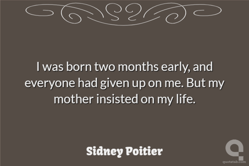 I was born two months early, and everyone had given up on me. But my mother insisted on my life.