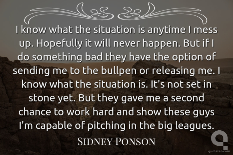 I know what the situation is anytime I mess up. Hopefully it will never happen. But if I do something bad they have the option of sending me to the bullpen or releasing me. I know what the situation is. It's not set in stone yet. But they gave me a second chance to work hard and show these guys I'm capable of pitching in the big leagues.