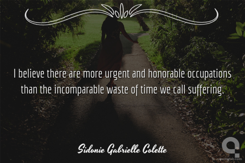 I believe there are more urgent and honorable occupations than the incomparable waste of time we call suffering.