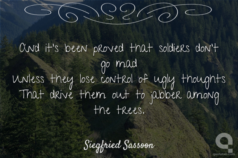 And it's been proved that soldiers don't go mad Unless they lose control of ugly thoughts That drive them out to jabber among the trees.