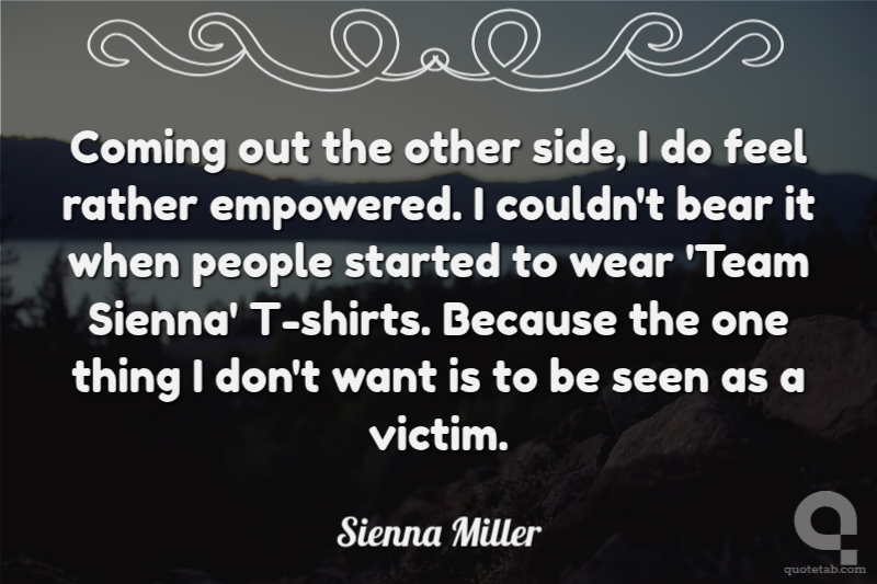 Coming out the other side, I do feel rather empowered. I couldn't bear it when people started to wear 'Team Sienna' T-shirts. Because the one thing I don't want is to be seen as a victim.