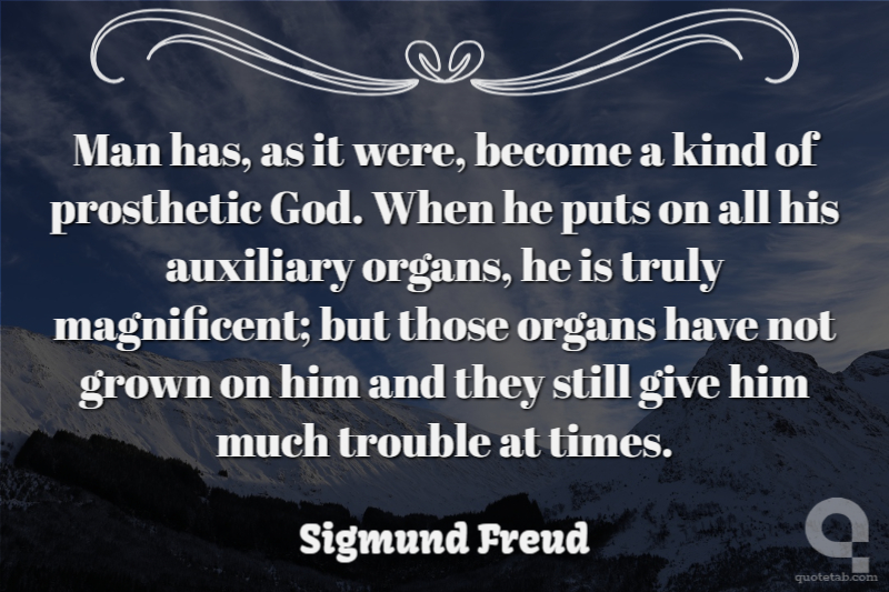 Man has, as it were, become a kind of prosthetic God. When he puts on all his auxiliary organs, he is truly magnificent; but those organs have not grown on him and they still give him much trouble at times.