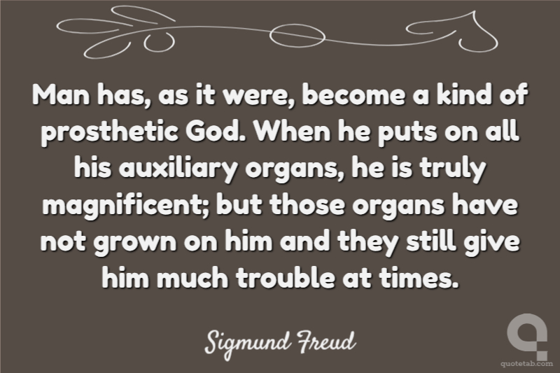 Man has, as it were, become a kind of prosthetic God. When he puts on all his auxiliary organs, he is truly magnificent; but those organs have not grown on him and they still give him much trouble at times.
