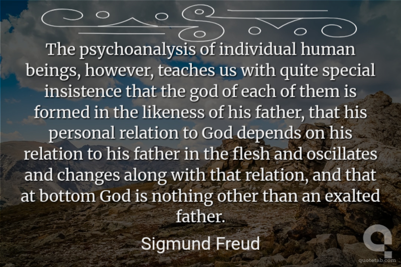 The psychoanalysis of individual human beings, however, teaches us with quite special insistence that the god of each of them is formed in the likeness of his father, that his personal relation to God depends on his relation to his father in the flesh and oscillates and changes along with that relation, and that at bottom God is nothing other than an exalted father.