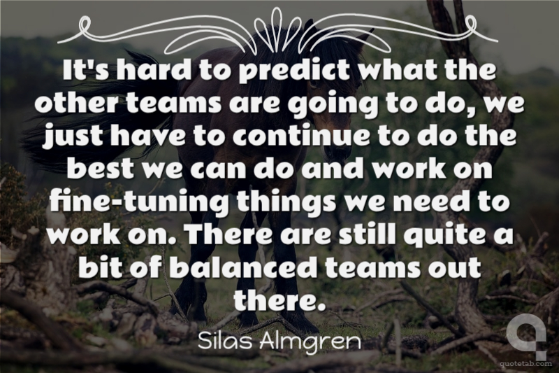 It's hard to predict what the other teams are going to do, we just have to continue to do the best we can do and work on fine-tuning things we need to work on. There are still quite a bit of balanced teams out there.