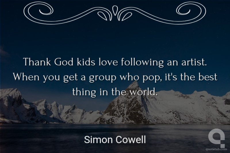 Thank God kids love following an artist. When you get a group who pop, it's the best thing in the world.