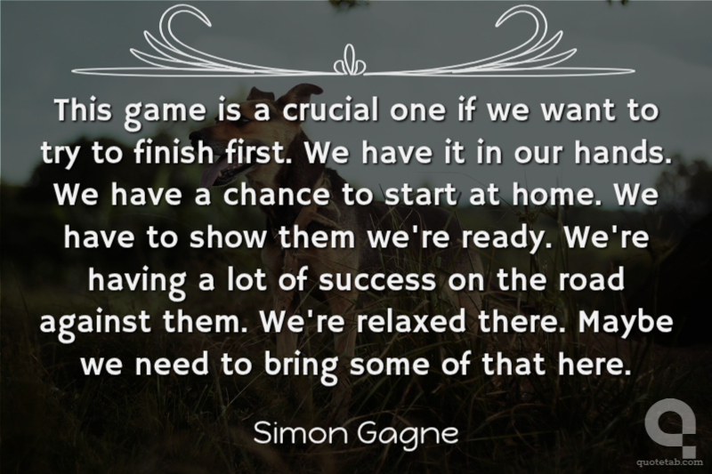 This game is a crucial one if we want to try to finish first. We have it in our hands. We have a chance to start at home. We have to show them we're ready. We're having a lot of success on the road against them. We're relaxed there. Maybe we need to bring some of that here.