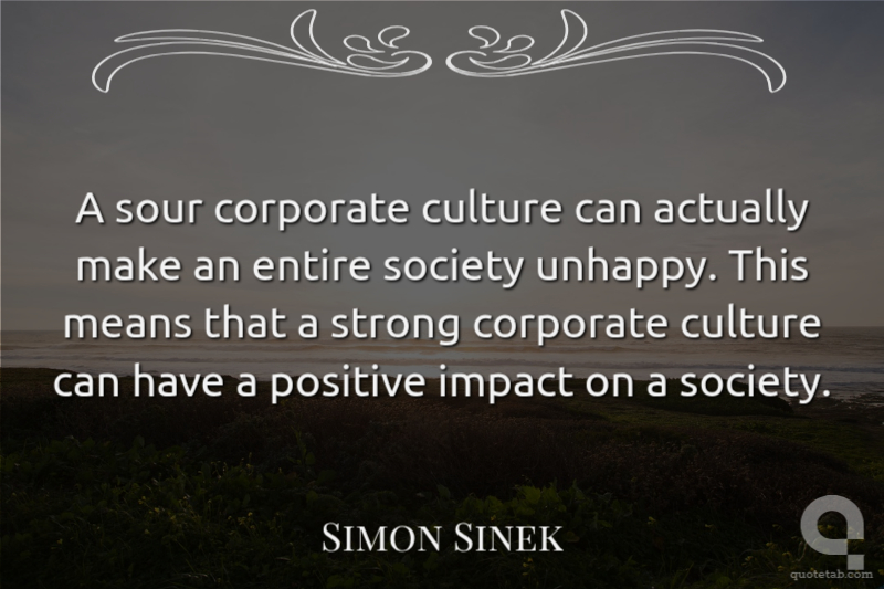 A sour corporate culture can actually make an entire society unhappy. This means that a strong corporate culture can have a positive impact on a society.