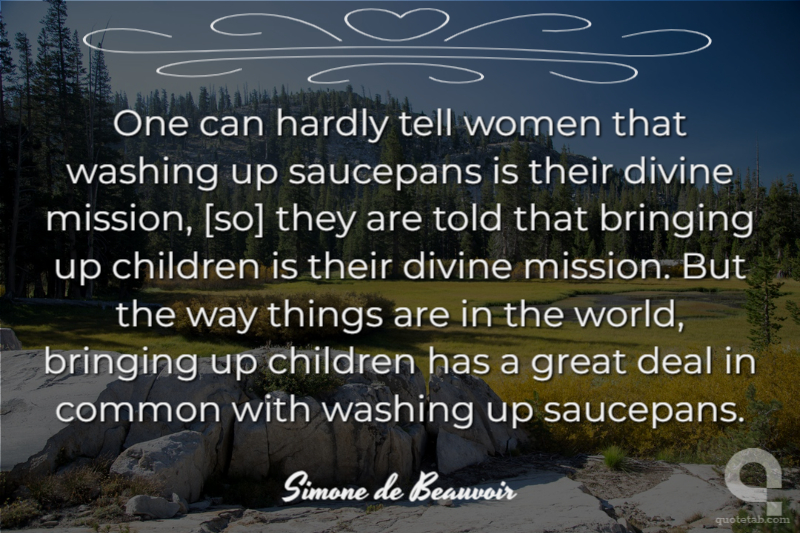 One can hardly tell women that washing up saucepans is their divine mission, [so] they are told that bringing up children is their divine mission. But the way things are in the world, bringing up children has a great deal in common with washing up saucepans.