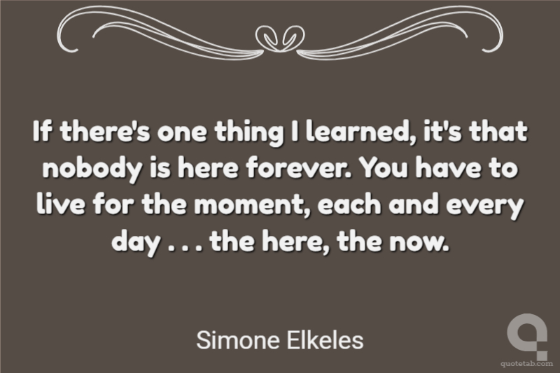 If there's one thing I learned, it's that nobody is here forever. You have to live for the moment, each and every day . . . the here, the now.