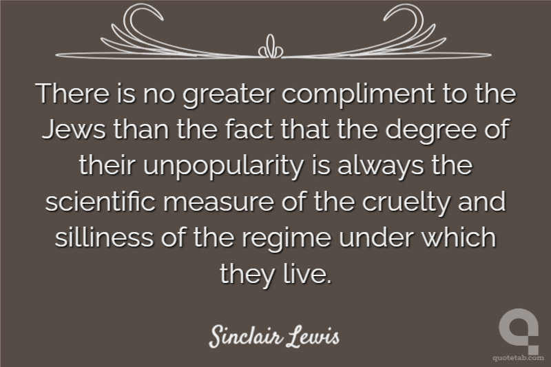 There is no greater compliment to the Jews than the fact that the degree of their unpopularity is always the scientific measure of the cruelty and silliness of the regime under which they live.