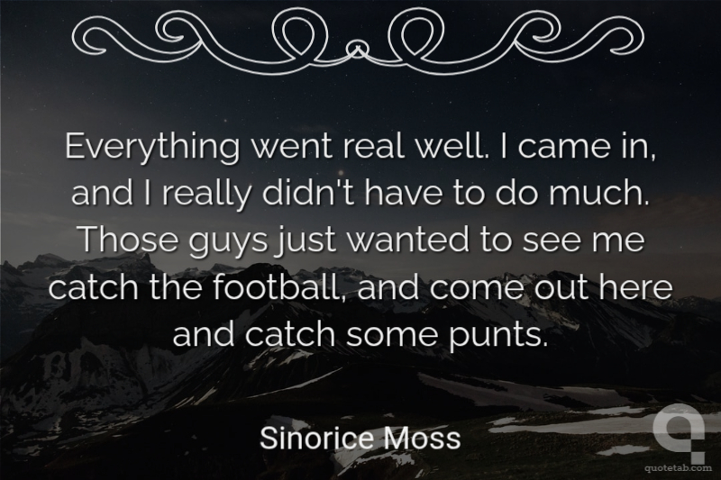 Everything went real well. I came in, and I really didn't have to do much. Those guys just wanted to see me catch the football, and come out here and catch some punts.