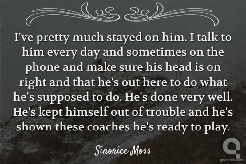 I've pretty much stayed on him. I talk to him every day and sometimes on the phone and make sure his head is on right and that he's out here to do what he's supposed to do. He's done very well. He's kept himself out of trouble and he's shown these coaches he's ready to play.