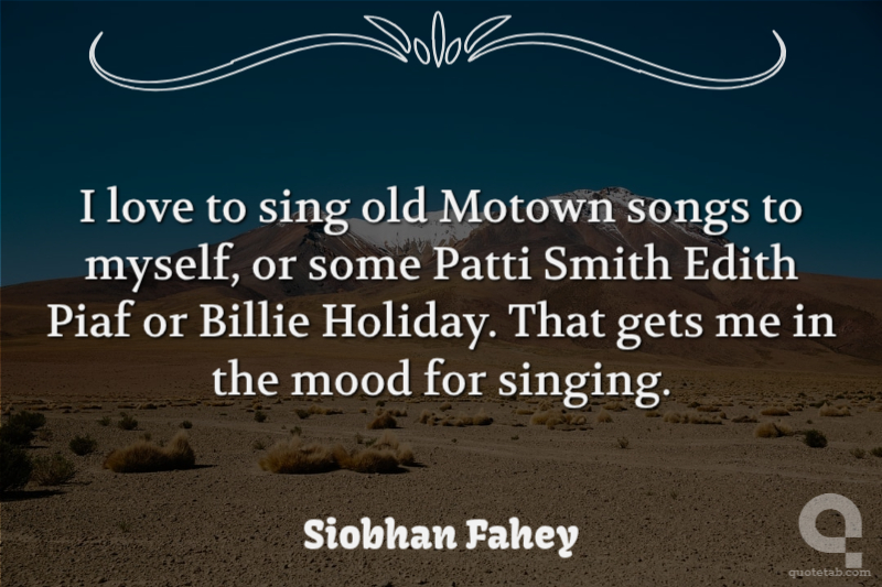 I love to sing old Motown songs to myself, or some Patti Smith Edith Piaf or Billie Holiday. That gets me in the mood for singing.