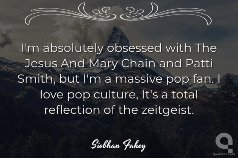 I'm absolutely obsessed with The Jesus And Mary Chain and Patti Smith, but I'm a massive pop fan. I love pop culture, It's a total reflection of the zeitgeist.