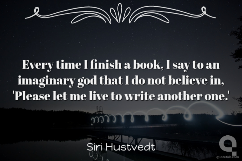 Every time I finish a book, I say to an imaginary god that I do not believe in, 'Please let me live to write another one.'