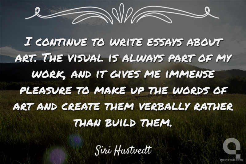 I love making up visual works of art in language. I get to be an artist without actually being an artist in that sense.
