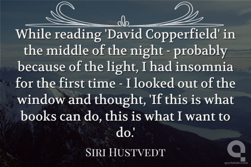 While reading 'David Copperfield' in the middle of the night - probably because of the light, I had insomnia for the first time - I looked out of the window and thought, 'If this is what books can do, this is what I want to do.'