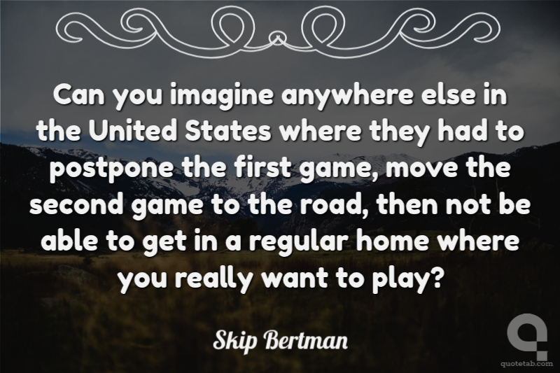 Can you imagine anywhere else in the United States where they had to postpone the first game, move the second game to the road, then not be able to get in a regular home where you really want to play?