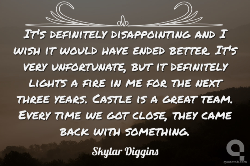 It's definitely disappointing and I wish it would have ended better. It's very unfortunate, but it definitely lights a fire in me for the next three years. Castle is a great team. Every time we got close, they came back with something.