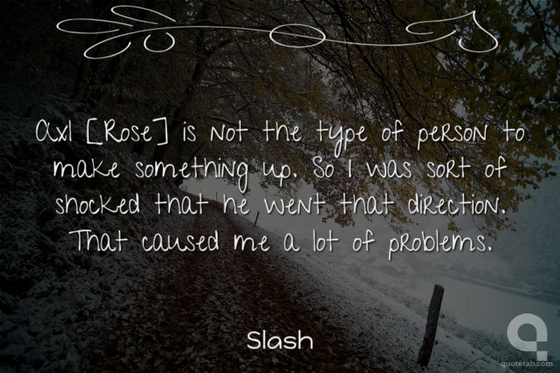 Axl [Rose] is not the type of person to make something up. So I was sort of shocked that he went that direction. That caused me a lot of problems.