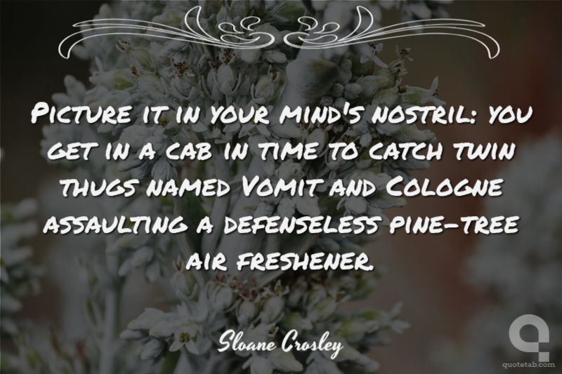 Picture it in your mind's nostril: you get in a cab in time to catch twin thugs named Vomit and Cologne assaulting a defenseless pine-tree air freshener.
