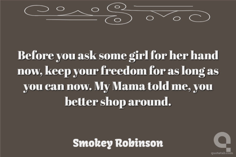 Before you ask some girl for her hand now, keep your freedom for as long as you can now. My Mama told me, you better shop around.