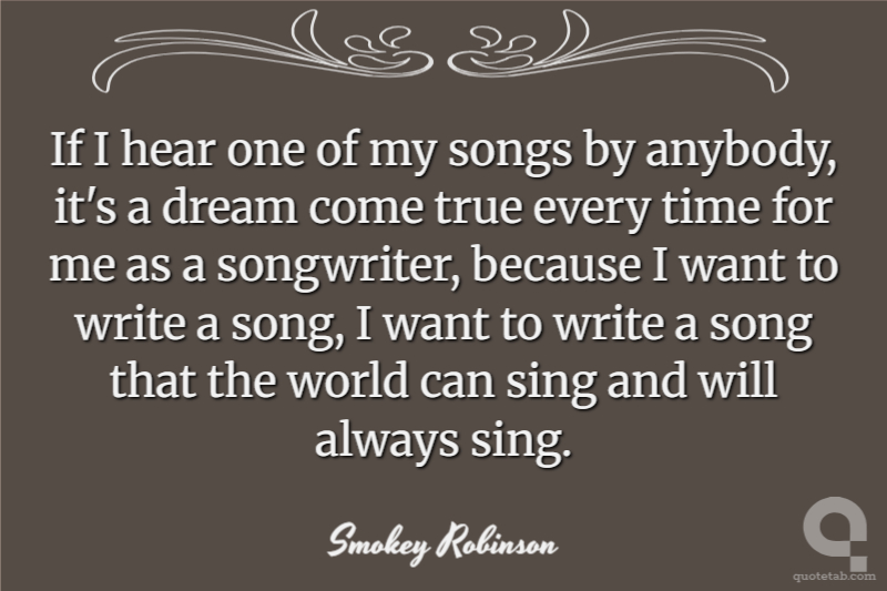 If I hear one of my songs by anybody, it's a dream come true every time for me as a songwriter, because I want to write a song, I want to write a song that the world can sing and will always sing.