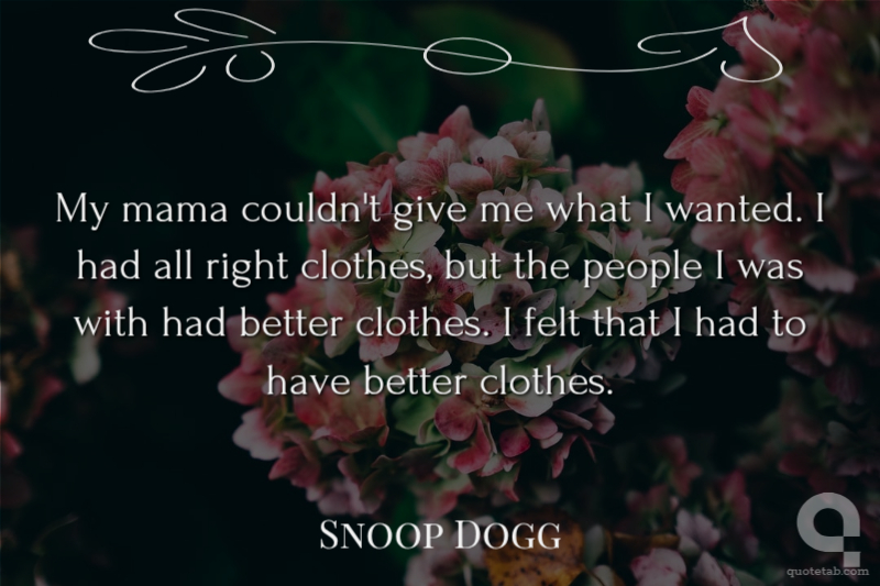 My mama couldn't give me what I wanted. I had all right clothes, but the people I was with had better clothes. I felt that I had to have better clothes.