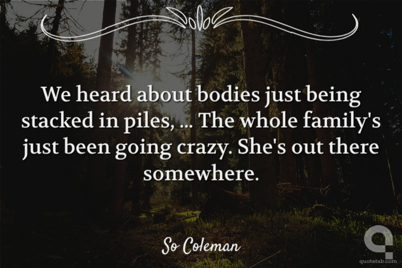 We heard about bodies just being stacked in piles, ... The whole family's just been going crazy. She's out there somewhere.