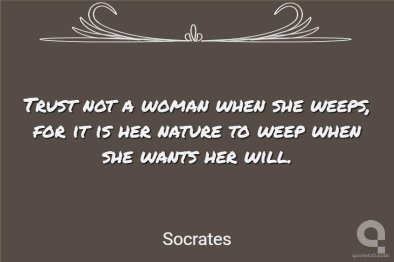 Trust not a woman when she weeps, for it is her nature to weep when she wants her will.