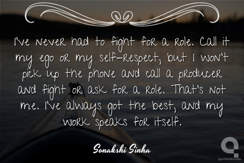 I've never had to fight for a role. Call it my ego or my self-respect, but I won't pick up the phone and call a producer and fight or ask for a role. That's not me. I've always got the best, and my work speaks for itself.
